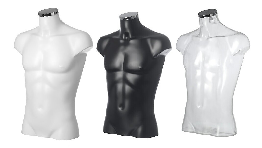 Skyltbyst i hårdplast. Inklusive kromad halstopp.